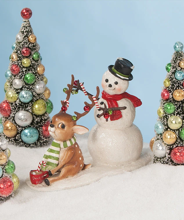 Bring your imagination to life with this amusing snowman and reindeer duo.