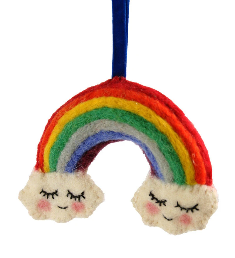 Brighten someones day with this colorful felt Happy Days Rainbow Ornament.