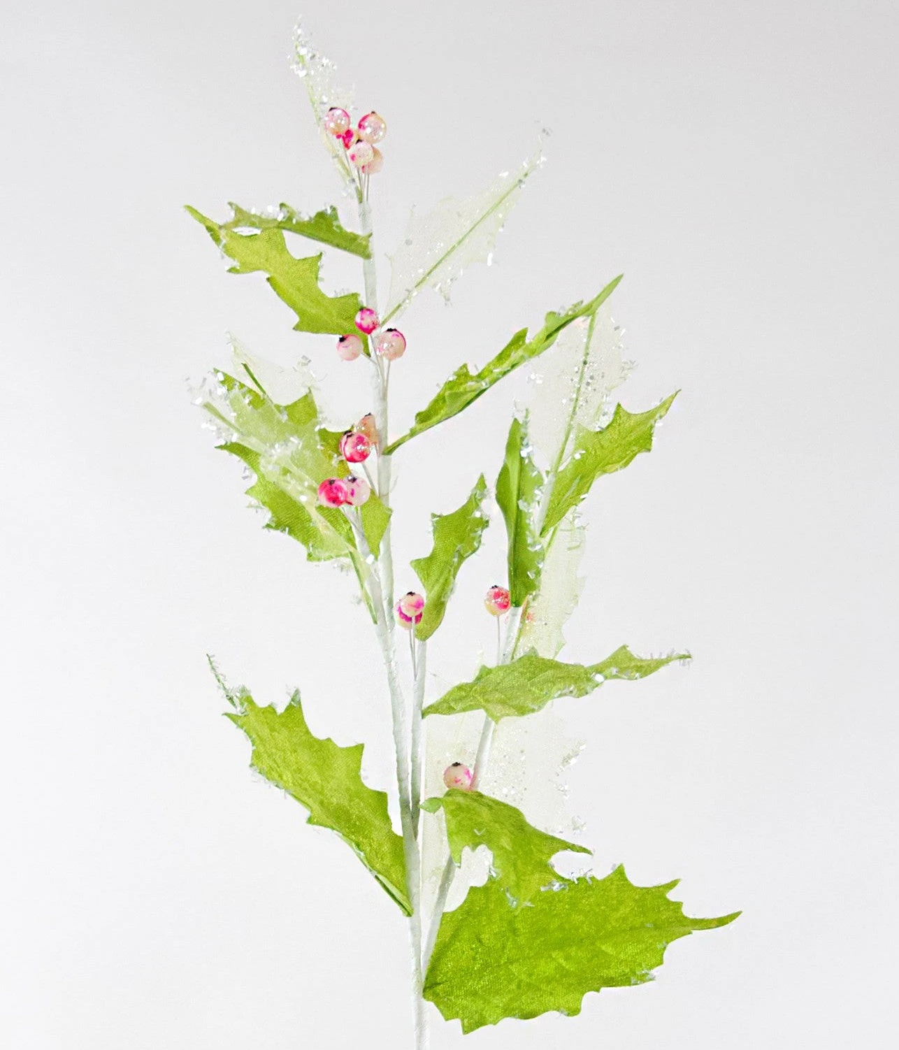Give your home a fun vibe this holiday season with this Iced Holly Spray with lime colored leaves and mottled pink berries.