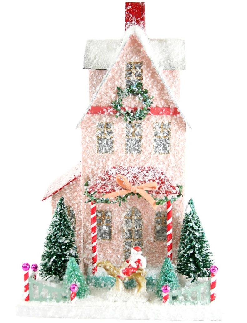 Create a festive Christmas scene with this cheerful pink Merry Merry House.
