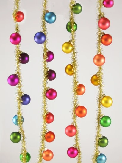 Make it fun with this colorful Rainbow glass ball garland on gold tinsel.