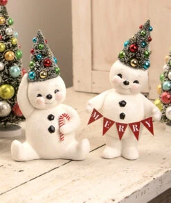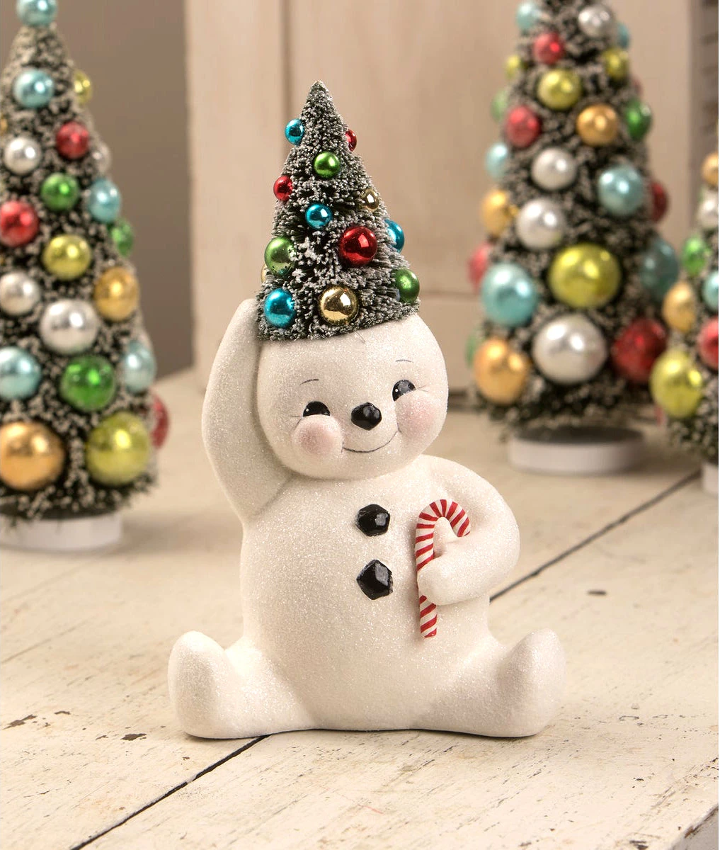 Create a playful atmosphere this Christmas with this cute Retro Candy Cane Snowman With Tree.