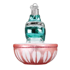 Bring a nostalgic feel to your Christmas decorating with this nifty 50’s style turquoise hand mixer and pink bowl ornament.