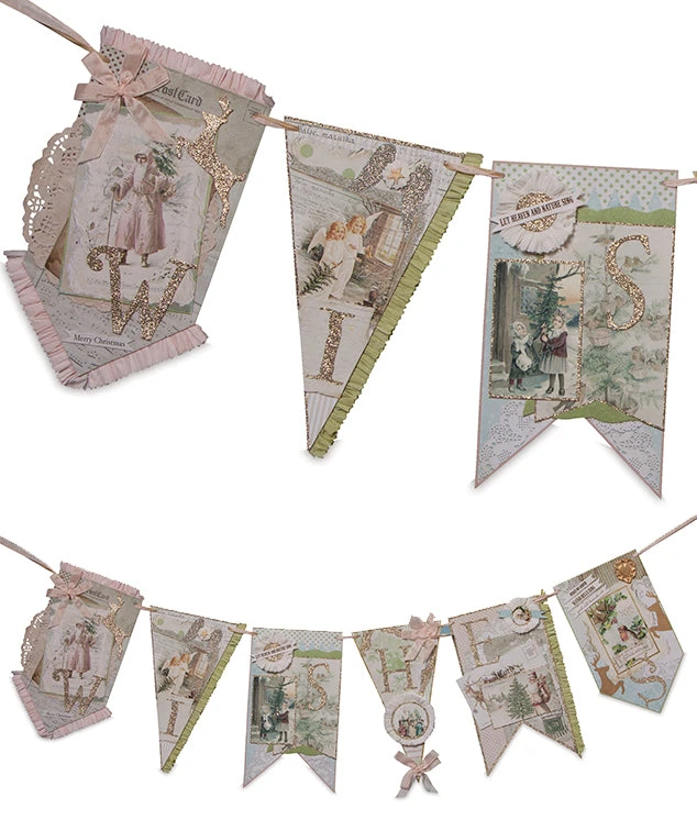 Add a feminine touch to your Christmas decorating with this gorgeous garland withย vintage Christmas images in pastel hues.